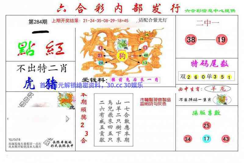 284期:天地+二肖〖地肖+牛猪〗开:牛41准 |
