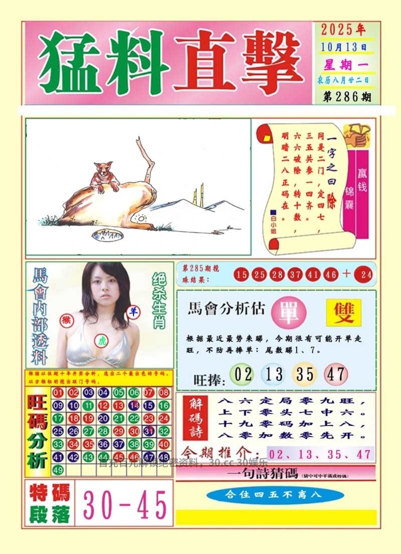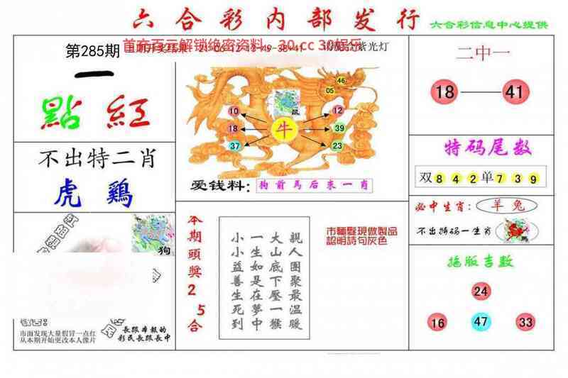 285期:天地+二肖〖地肖+兔牛〗开:马24错 |